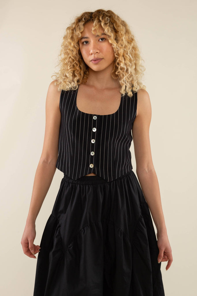 Oakley Pinstripe Vest | Button Down Square Neck Tank
