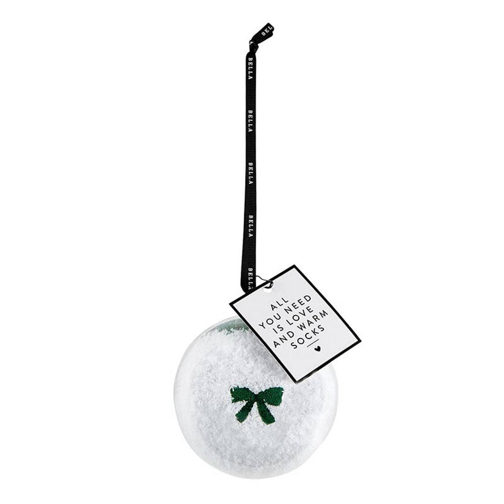 Cozy Socks in Ornament - White with Green Bow