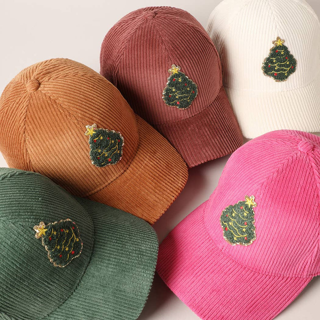Christmas Tree Patch Corduroy Baseball Cap