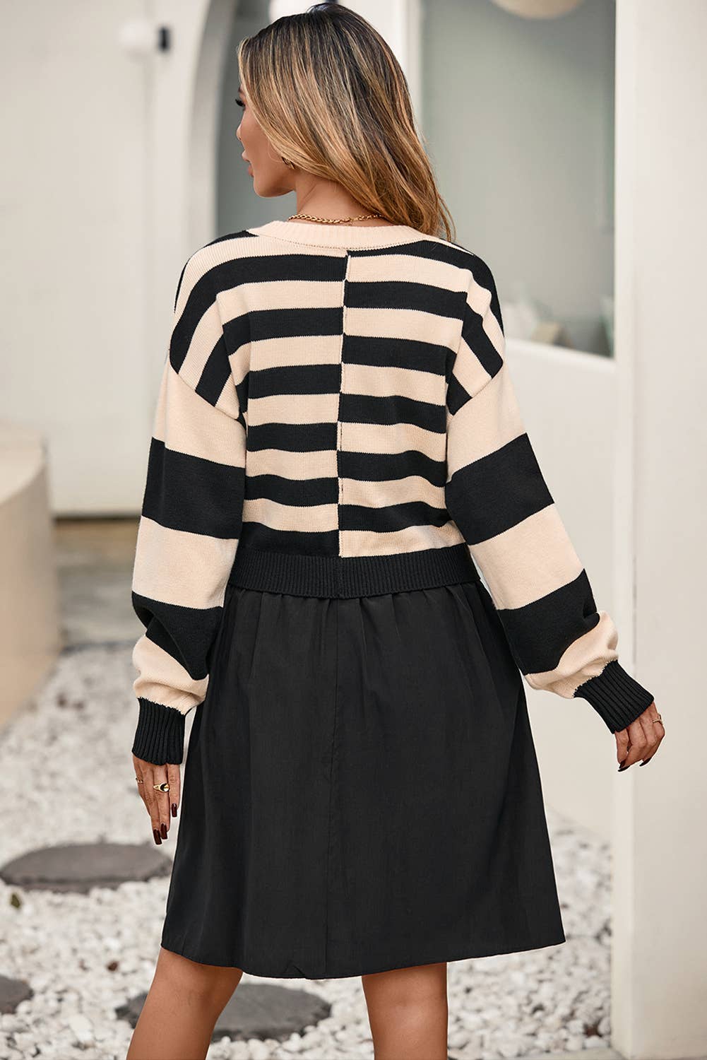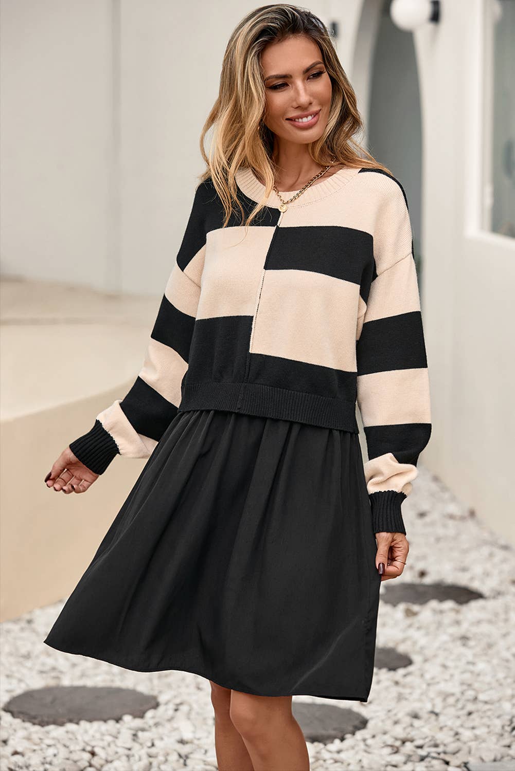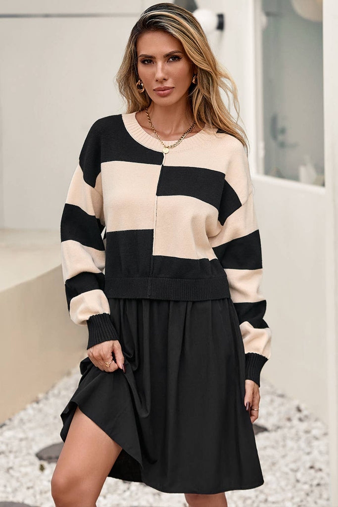 LDC Two in One Knitted Top Splicing Hem Sweater Dress