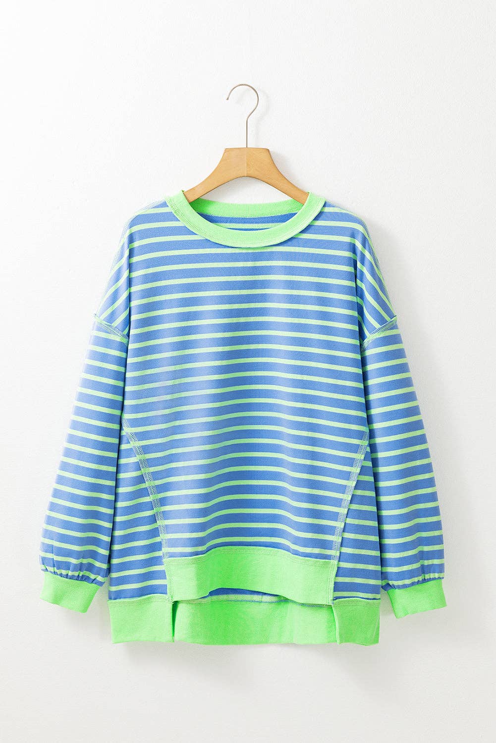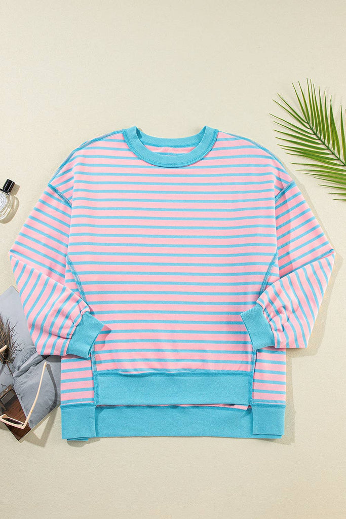 Pink Stripe Contrast Trim High Low Pullover Tunic Sweatshirt
