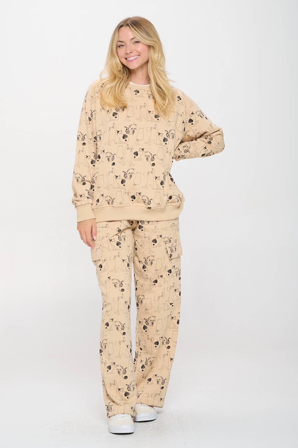 ALL OVER CAT PRINT COTTON SWEATPANTS - M is backordered and will ship as soon as it is back in stock.
