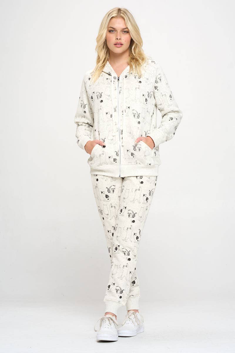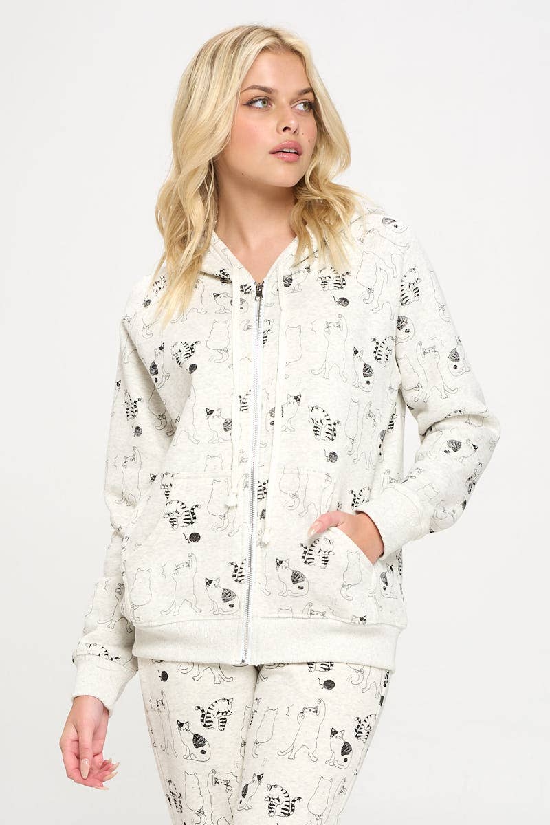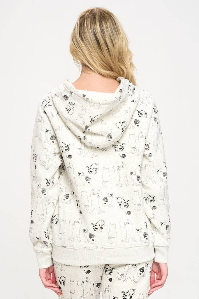 All Over Cat Print Zip-Up Hoodie - 2S is backordered and will ship as soon as it is back in stock.