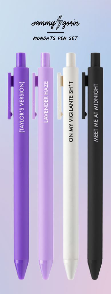 Set includes four pens that are adhered to a backing card and placed in a ready-to-hang cellophane bag.