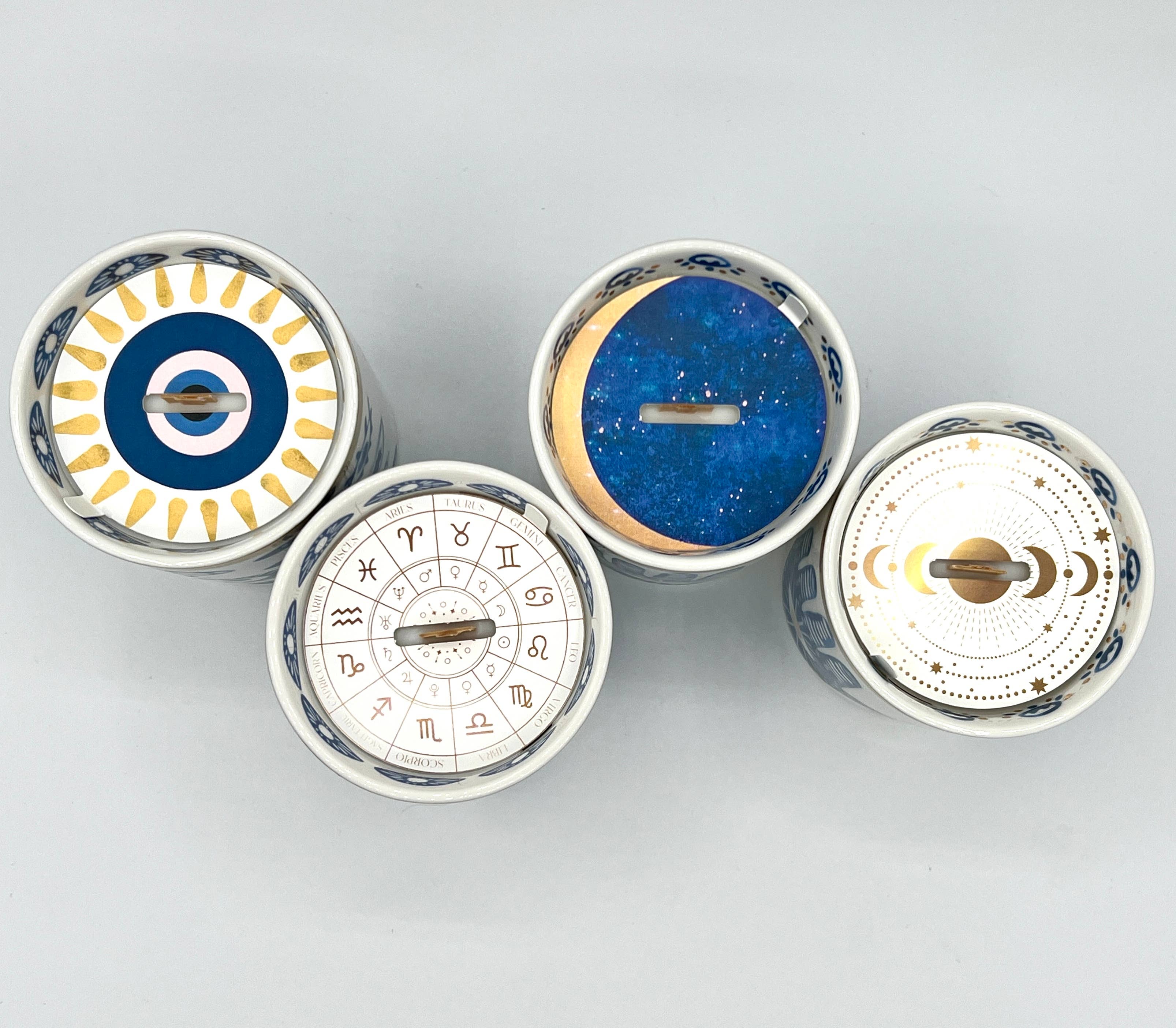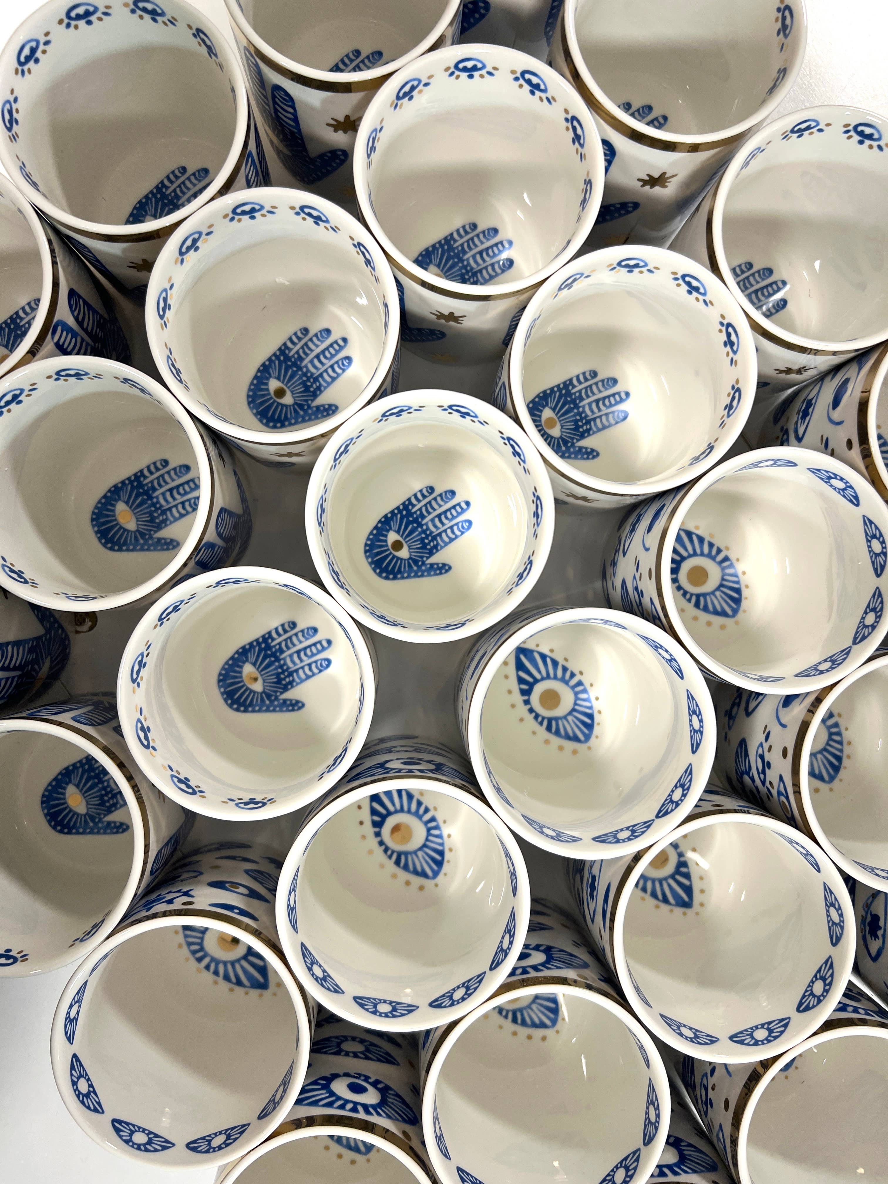 NEW! Beautiful Gold & Blue White Ceramic Hamsa Candle