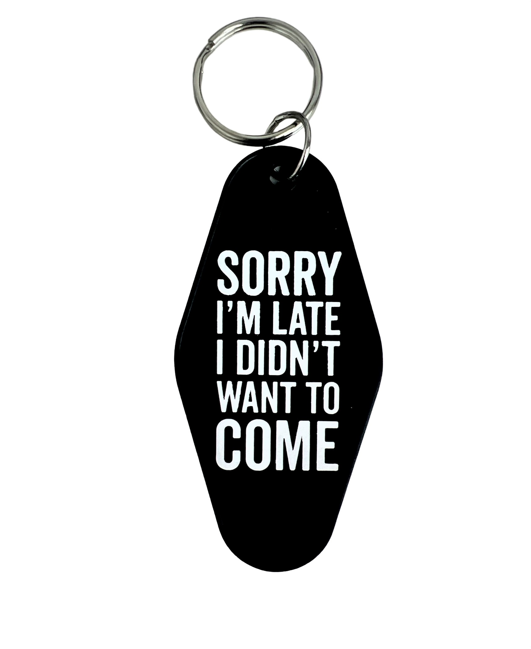 Key chain is an adaptation from the classic hotel/motel key tags.